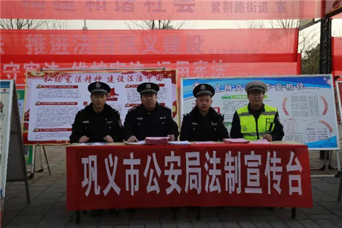 12月4日,巩义市公安局在市人民广场集中组织开展系列法制宣传活动,巩义市委常委、政法委书记、公安局长陈兆甲出席活动,全市38家普法成员单位参加活动。市公安局组织法制大队、交警大队、禁毒大队等与群众日常生活密切相关的警种单位在活动现场,集中开展了法律咨询、发放宣传单等宣传活动。