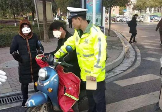 12月8日上午9时30分许,在魏源国际酒店丁字路口,电动车自行车驾驶人谢某搭乘妻子和女儿,因涉嫌闯红灯且超员驾驶,被执法民警查获。因电动车自行车的座位比较短,无法坐下3个人,谢某只好要其近3岁的女儿站在座位前面,由于天气很冷,小女孩没围围巾,也没戴口罩和安全头盔,手、脸冻得通红,鼻涕眼泪直流,执法民警胡明见状,当即找来一双崭新的手套给小女孩戴上,并拿来纸巾帮其擦净鼻涕和眼泪。民警暖心的举动感动驾驶人谢某及其妻子,他们在欣然接受交通违法处罚时表示,以后一定遵守交通安全法,不闯红灯不超员驾驶。