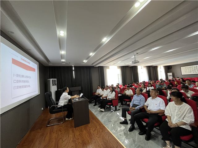 在会议室,市特校党员干部、教职工开展了集体学习、专题党课和表彰活动。学校专职思政教师重点围绕习近平总书记在中央政治局第五次集体学习时的重要讲话精神,结合党的二十大精神,向全体党员干部、教职工作了专题讲座,她从教育的重要性、办好教育的总体思路、办好教育的重点任务三个方面逐一进行了阐述,号召全体教职工要进一步坚持立德树人根本任务、坚持科学教育理念、坚持教育质量生命线,进一步把思想和行动统一到以习近平同志为核心的党中央的决策部署上来,扎实推动特殊教育工作转型发展。
