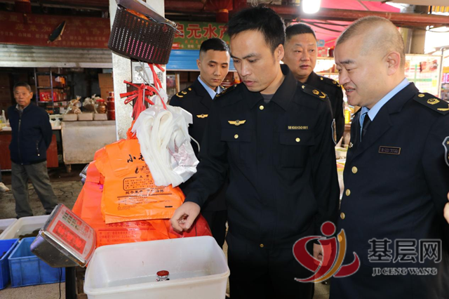 10月31日上午,娄星区市场监督管理局联合娄底市计量测试检定所执法人员赶到中兴市场,针对前期检查情况对中兴市场及其周边的摊贩和商户进行“回头看”检查,重点查看水产店、海鲜店、生鲜肉店、蔬菜店在用的电子计价秤是否称重准确,是否按期检定合格,铅封是否完好,是否存在使用未经检定、检定不合格、超过检定周期、破坏准确度和安装作弊装置电子计价秤等计量违法行为。同时,执法人员还向经营者和围观群众普及计量相关法律法规知识,提升经营者诚信经营意识,增强消费者的计量意识和识别作弊能力。经过检查,执法人员当场依法扣押1台涉嫌不合格的电子计价秤并要求该商户立即改正。