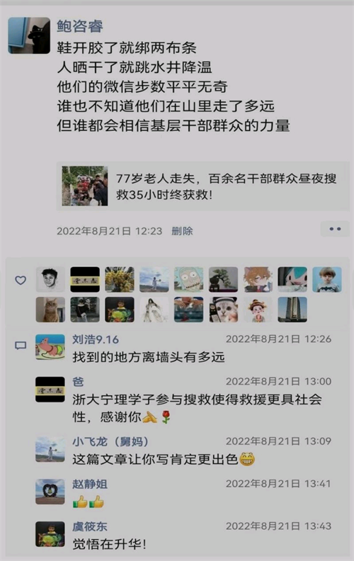 找到老人后鲍咨睿欣喜的发了朋友圈