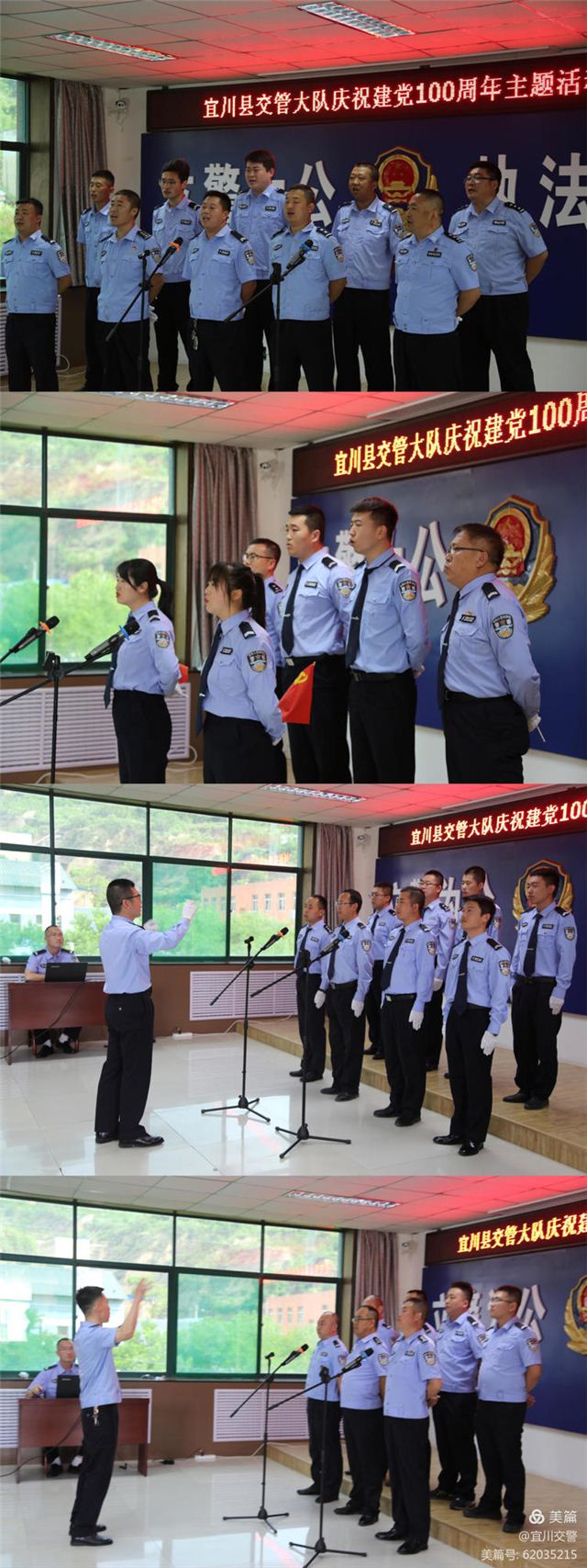 中国基层网讯:为纪念中国共产党建党100周年,激发党员群众爱党、爱祖国的热情,6月11日,由宜川县公安局交通管理大队主办,大队工会及警务保障室协办的庆祝建党100周年主题活动比赛在大队四楼会议室举办。此次主题活动比赛由大队领导班子成员担任评委团对参赛队伍的演唱技巧、艺术表现、精神面貌、创新创意等方面进行评分。