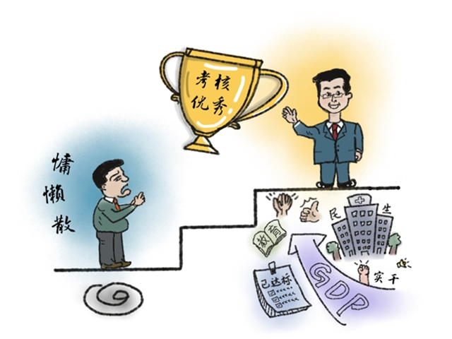 应该扎实“日常督查+绩效考核+年终考核”全方位、多层次立体考核,画好干部“精准像”;依据部门特点、岗位需求将考核内容精准化、特色化,提高考核“分辨率”。把表彰奖励融到日常,把政策激励做在平常,把考评标准精准刻画,把考核结果刚性兑现。对于愿为、能为、善为、能实干、出实绩的干部,要及时给予奖励、“大张旗鼓”宣传,让有为者有位、能干者能上、优秀者优先。对于“好事争着干、难事绕着走”的“慵懒散”干部,要严格运用好“三项机制”,充分发挥考核传导压力、激发动力的作用,推动工作开新局创新绩。(文/图 陕西省榆林市佳县县委组织部 刘娇娇)