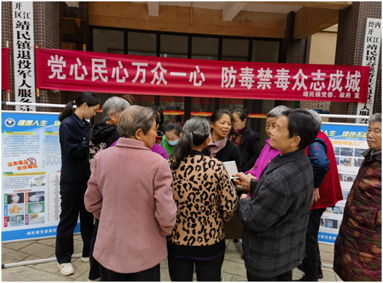 为使广大居民群众增强拒毒、防毒意识,共创平安和谐靖民,4月7日上午,内江经开区靖民镇综治办、派出所协同合作,扎实开展“党心民心万众一心,防毒禁毒众志成城”禁毒宣传活动。