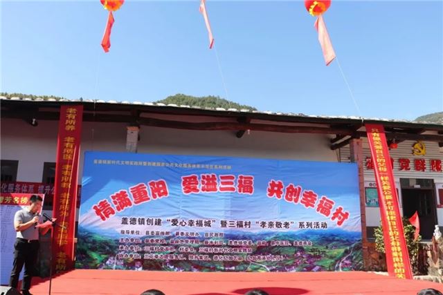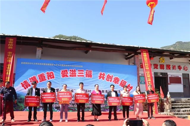 中国基层网讯:九月九遇重阳,情满重阳、爱溢三福。10月25日上午,爱心幸福城暨盖德镇三福村“孝亲敬老”系列活动在三福村党群服务中心举行。德化新阶联第八组在秘书长陈文理、郭山玉,常务副会长苏宏基等一行出席捐款慰问活动。