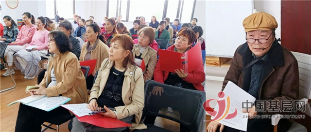 图为退休党员刘伟一同志给歌唱班学员上课