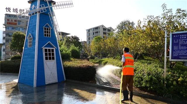 “唰唰唰……”一大早,伴随着机械的轰鸣声和冲水声,身穿橘色马甲的环卫工人便已经忙碌起来,手持高压水枪开始了一天的作业。