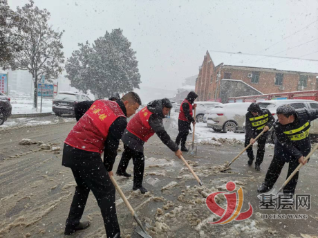 洋溪镇党委书记伍禄军和党委副书记、镇长候选人杨宗育、专职副书记何智锋也穿上了“洋溪红”战衣,与干部群众打成一片,加入了铲雪除冰的队伍中,雪铲的咔嚓声,干部、志愿者,民兵们欢快的吆喝声,传递出洋溪最温暖的干群情。