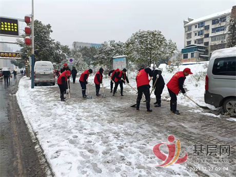 全体机关干部、党员和志愿者们躬着身子,握着扫把,抡起铁锹,挥着雪铲,经过三个多小时全力清除道路上的积雪和暗冰,大大方便了行人车辆安全出行,用小行动"保障"大民生。