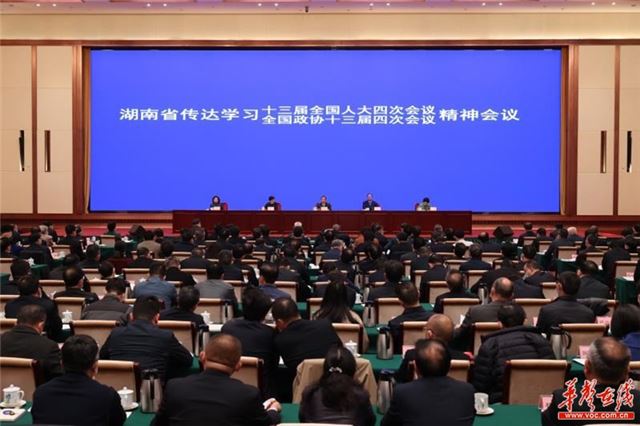 许达哲强调,要迅速兴起学习贯彻热潮,让全国两会精神传遍三湘四水、深入千家万户。要及时跟进抓好传达学习,形成一级抓一级、层层抓落实的学习贯彻热潮。要融会贯通抓好政策转化,切实将政府工作报告等两会文件中的政策红利转化为推动湖南高质量发展的科学思路和务实举措。要创新方式抓好宣传宣讲,更好强自信、暖人心、聚民心。全国人大代表、政协委员要带头宣传宣讲,把两会精神“播种”到三湘四水、群众心中。