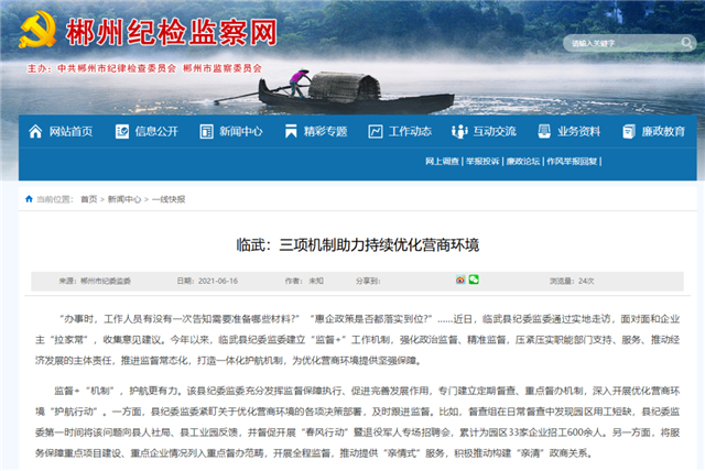 2021年临武县纪委监委持续优化营商环境相关工作