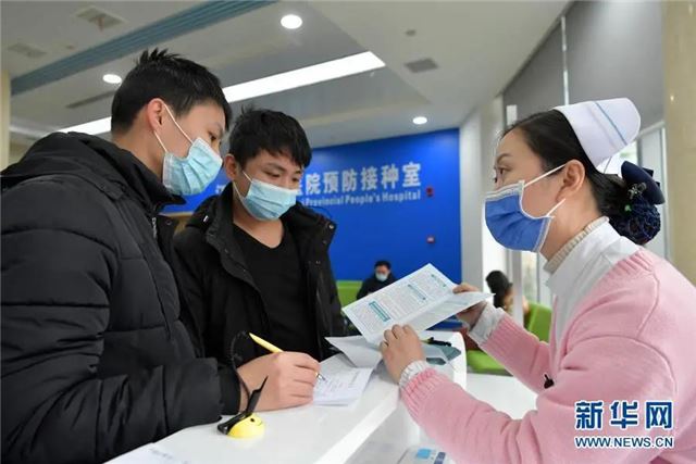 1月4日,在江西省人民医院红谷滩院区,护士向人们介绍接种新冠疫苗的相关注意事项。新华社记者 彭昭之 摄