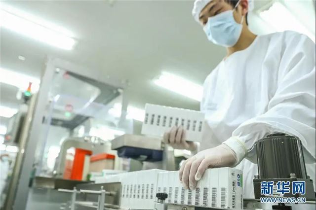 2020年12月25日,工作人员在国药集团中国生物北京生物制品研究所的新冠病毒灭活疫苗分包装车间内工作。新华社记者 张玉薇 摄