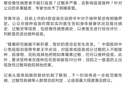慢性病、过敏能否打疫苗?禁忌症判定更细致