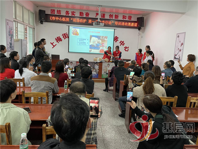 中国基层网湖南频道5月19日讯(通讯员:孙朝辉 刘娟云)为进一步有效推动公众急救知识技能普及工作,助力基层医务人员临床应急救护能力和实践操作能力,提高基层医疗服务能力,5月18日上午,娄底市中心医院“现场救护——第一目击者”导师培训团队走进新化县上梅街道社区卫生服务中心,为本院70多名干部职工和辖区内乡村医生及门诊医生进行“现场救护——第一目击者行动”培训活动。