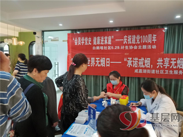 中国基层网湖南频道讯 2021年5月29日,是我国计生协会成立第41周年纪念日,也是计生协会第23个“会员活动日”。5月27日上午,长沙市岳麓区咸嘉湖街道白鹤咀社区联合咸嘉湖卫生服务中心、爱尔眼科等单位开展“会员学党史,健康进家庭”庆祝建党100周年主题健康教育服务活动。