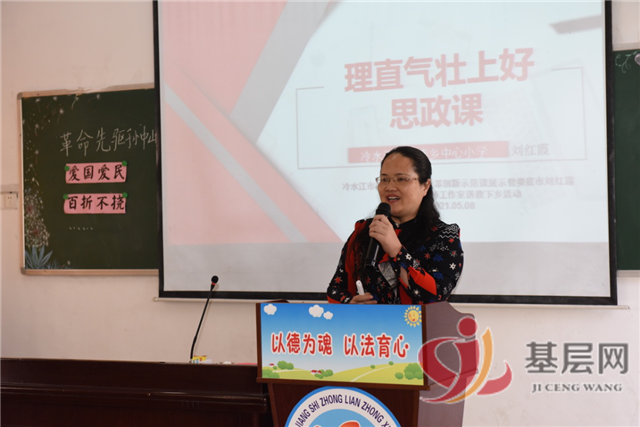 示范课后,娄底市刘红霞小学德育名师工作室首席名师、中连乡中心小学校长刘红霞对每堂课进行了精彩点评并作了题为《理直气壮上好思政课》的专题讲座。