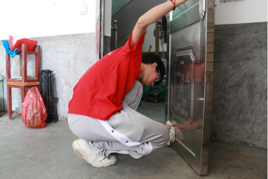 为向郭利昌老先生表达关怀和敬意,志愿者团队在其家中打扫了卫生并进行了家电维修。