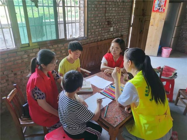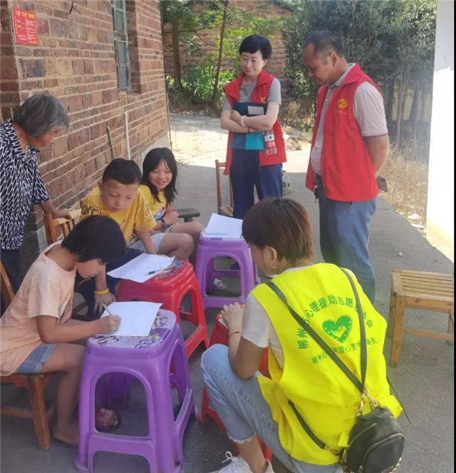 活动中,志愿者与特邀的专业心理健康辅导老师通过绘图小游戏、一对一交流等方式,用亲切的话语逐步拉近与留守孩子的心理距离,通过鼓励、安抚等帮助困境孩子树立积极、乐观、向上的心态,鼓励他们遇到困难不气馁、不自卑,多方位思考并努力进步才是解决问题的好方法。