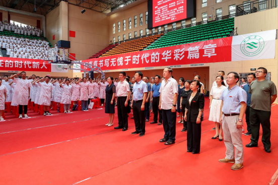 随后,医药类新生举行换装及宣誓仪式。“健康所系,性命相托……”在参会领导的见证下,大家高举右拳庄严宣誓,许下献身医学的承诺。