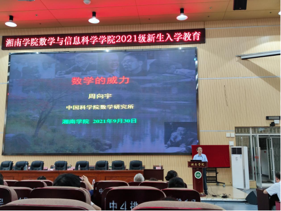 (通讯员 李伟 摄影 陈斓茜)9月30日下午,湘南学院数学与信息科学学院在思政报告厅举行2021级新生入学教育暨师生见面会。中国科学院院士、中国科学院数学与系统科学研究院研究员周向宇应邀为新生作讲座。党委副书记、校长王晓萍出席活动。