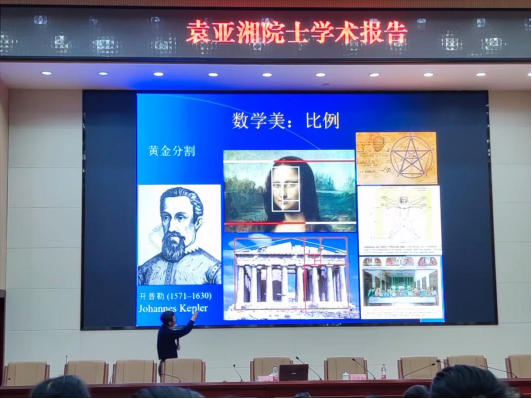 会议伊始,袁亚湘用风趣的语言阐述了几种优化算法,介绍了求π的公式方法。他抓住美、真、趣、难、慧五个关键词,结合古今中外事例和自身经历,说明了数学的方方面面。他认为洛必达法则告诉我们,输的不是起跑线,而是速度,并以此向师生说明了努力的重要性。同学们被他通俗、生动、风趣的语言深深吸引,现场掌声阵阵。袁亚湘和同学们一起讨论他们提出的问题,并一一做了详细解答,讲座现场气氛活跃、融洽。