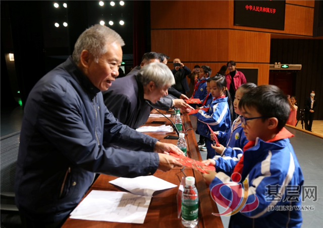 图为:娄底市老科协、老年保健协会领导为贫困学生赠发爱心助学金