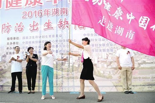 ▲住湘全国政协委员、湖南省卫健委副主任易露茜(左三)参加妇幼健康中国行走进湖南启动仪式。