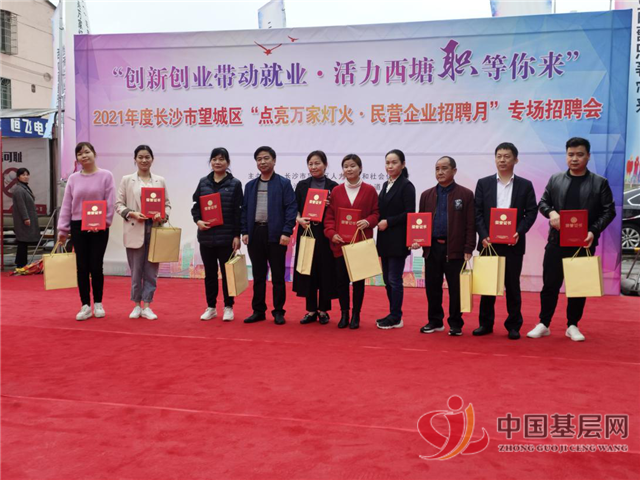 中国基层网湖南频道4月22日讯(通讯员:叶笑益)为深入贯彻落实党中央、省、市关于稳就业、保就业决策部署,全方位发挥基层公共就业服务平台的作用,促进就业困难人员、离校未就业高校毕业生、残疾人、退役军人、拆迁失地农民、下岗(待岗)人员、城乡低保家庭成员等重点群体就业创业。今天上午,长沙市望城区2021年度“点亮万家灯火·民营企业招聘月”西塘街社区专场招聘会在望城区红旺市场隆重举办,本次活动由区人力资源和社会保障局主办、高塘岭街道办事处承办、长沙农商行协办、西塘街社区执行。
