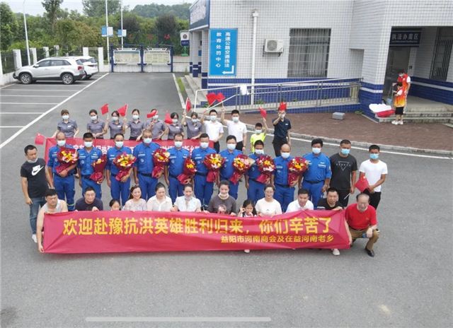 (记者 曹贵)7月29日8:30,益阳市蓝天救援队圆满完成驰援河南抗洪救灾任务,抵达邓石桥高速收费站出口。市民政局、市慈善总会及社会各界人士组成迎接队伍,欢迎援豫队员平安回益。副市长李劲松出席。
