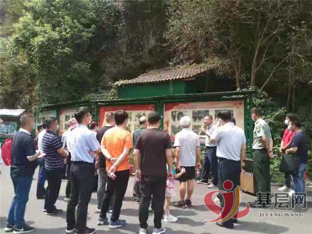 廖建华部长一行人首先驻足参观了红军营的红色教育宣传栏版块,在此听吴长征给大家讲述长寿13位开国将军的故事以及红军营的由来。作为一名退伍老兵,吴长征激情满怀地讲述着自己当年和这些老首长见面时的场景,同时也讲述了自己回到家乡,十年如一日耕耘红军营的初心,一行人听后表示非常赞赏,并希望其继续下去,争取更大的成功。
