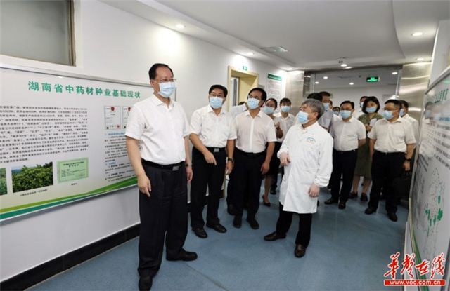 (8月24日,省委副书记、省长毛伟明在湖南农业大学和部分农业龙头企业调研。图为毛伟明在湖南农业大学岳麓山中药材种业创新中心调研。)