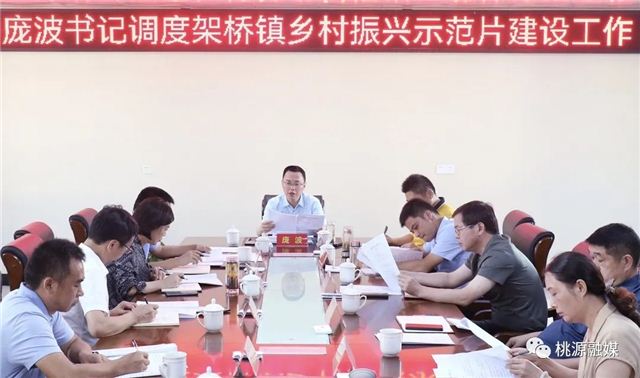 7月13日下午,常德市桃源县县委书记庞波专题调度架桥镇乡村振兴示范片建设工作。他强调,各级各部门要提高思想认识,坚持以人民为中心,一切从实际出发,聚焦工作重点,以更坚定的决心、更有力的举措,真正将架桥镇乡村振兴示范片打造成为桃源乡村振兴的靓丽名片。