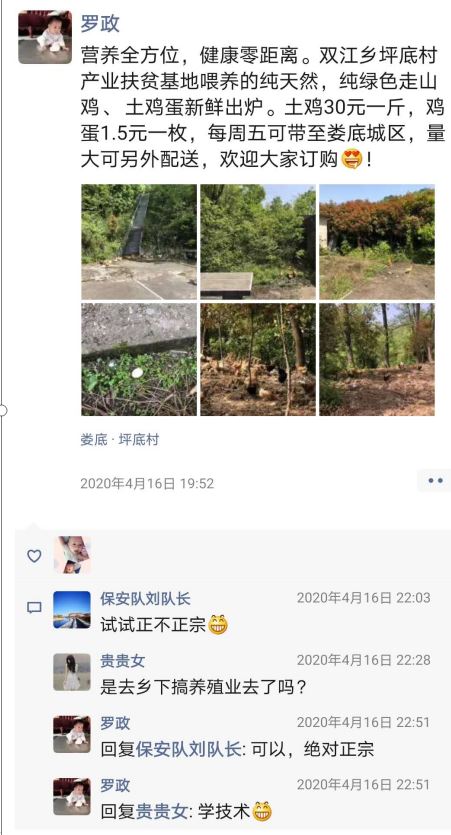中国基层网讯(通讯员 刘雪芬 )“这些鸡全部都是散养的,吃的是苞谷和山上的野食,大家可以看到鸡群在山坡上跑来跑去……”4月17日,娄星区人民医院驻双江乡坪底村帮扶工作队队员罗政化身“带货主播”,在微信群里录制视频向亲朋好友、同事销售双江乡坪底村养鸡场的土鸡蛋。