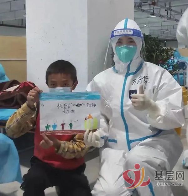 回顾这些天的援藏抗疫经历,胡蝶万千感慨,她说一路上有太多让人泪目的瞬间,印象最深的是有一次组织方舱内小朋友开展画画活动,小朋友很多都画了身着防护服的医务人员,并写着“祝你们一路平安,加油!”等祝福的话语,孩子用最质朴的语言为她们送上了最真诚的祝福,孩子说:“我们不惧怕新冠病毒,我相信叔叔阿姨”,看到孩子们坚定的眼神和充满希望的话语,胡蝶被他们这种精神所感动。
