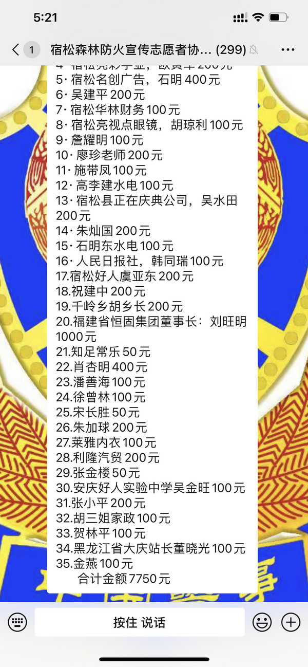 安徽宿松讯(文/图 徐曾林 责编 韩同瑞)近日,一名身处山区的叫熊娟的森林防火宣传志愿者,发出一封求助信,引发大家的关注。宿松县森林防火志愿者协会会长石仲晖及会员随即积极响应,短短三天时间大家纷纷慷慨解囊,以发红包专人负责接收的方式,捐得7750元善款。