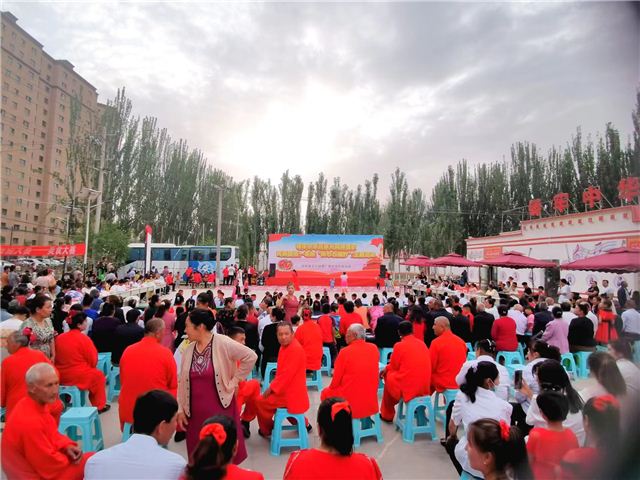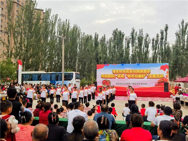 活动现场,各民族群众、学生等聚集在一起,共同参加互动、表演节目、广场舞、太极表演红歌比赛等内容。