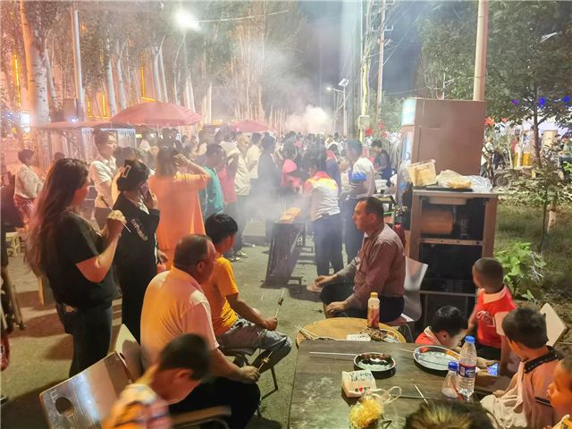 活动现场举行了美食大赛评选活动。来自各乡村的村民,参赛者们带来了各自家的特色美食,有特色抓饭、饺子、糕点、羊杂汤、面肺子、特色凉粉、大盘鸡等等。每个参赛者都充分发挥自己的创意和烹饪技巧,在美食评选部分展示了自己的作品,吸引了众多人的欢呼声和赞叹声。而在手工制作部分,参赛者们则考验了自己的耐心和技艺,有人制作了精美的蛋糕,有人则亲手搭建了自己的餐厅,展现了自己的餐饮技能和艺术审美。