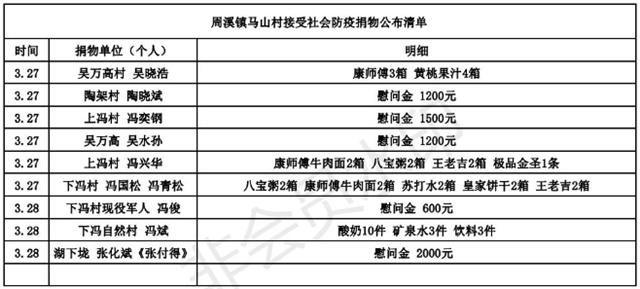在广州上班的马山村村民心系家乡疫情防控,在千里之外,特转2000元现金,及陶晓斌、冯绍杰、冯兴华等村民委托其亲属送方便面、八宝粥、王老吉等物资到路口卡点,慰问马山村一线防疫工作人员。身在千里,心在“抗疫”,铸造家乡防疫铁血之魂。