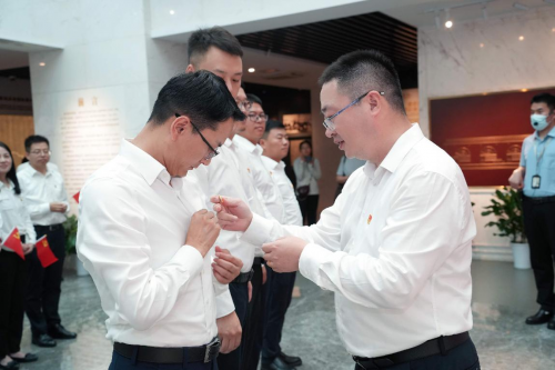 张帅为新发展党员佩戴党徽