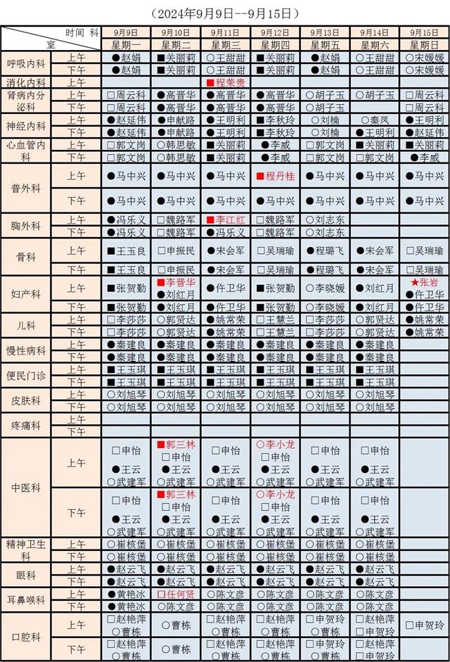 为保障广大群众就医需求,结合医院实际,现将“中秋节”期间(9月15日——9月17日)我院门诊安排公布如下: