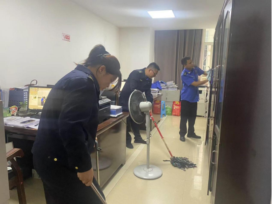 一方面按照白天人工巡回保洁,夜间全域机械冲洗,重点做好主次干道、绿化带、公园等地环境卫生,清扫卫生死角,清除暴露性建筑垃圾、生活垃圾、杂草等,确保清扫保洁“横向到边、纵向到底、根治死角、杜绝盲区”。根据各垃圾收集点位产生的垃圾量及时调整清运频次,采取“全天候保障+重点时段集中”的作业模式,灵活调度车辆,确保辖区内生活垃圾及时清理,无积压、不过夜、日产日清。另一方面组织开展办公室环境卫生大扫除,按照卫生分工和责任区域,对各自办公室的地面、桌面、窗户卫生进行清扫,对个人物品和办公文件等进行整理归档,营造干净、整洁、卫生的办公环境。