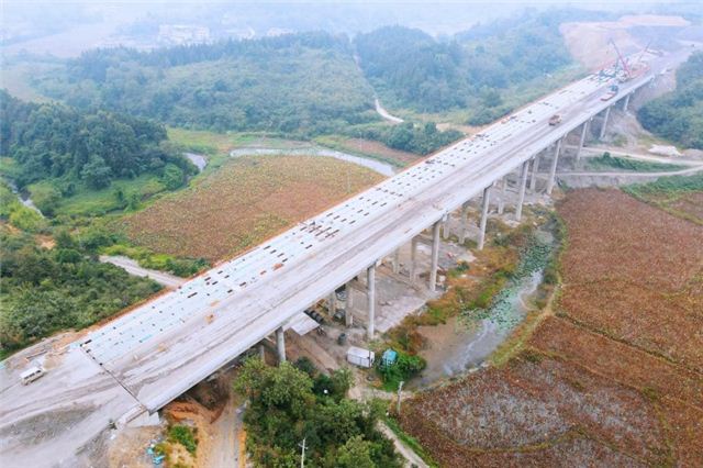 茶常高速第15合同段项目稻田公园特大桥实现全幅贯通