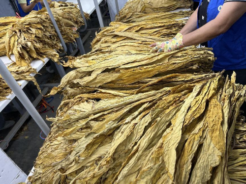 近日,走进曲江镇烟叶收购站,整个院子充盈着独特的烟叶味,淡淡的清香,一车车装满金黄烟叶的农用车有序地停放等待,烟农在烟站工作人员的引导下,将自家的烟叶卸车后送进分级区域,一捆捆烟叶整齐有序地排列着,工作人员严格按照烟叶收购标准对烟叶进行分拣,一片片金黄色的烤烟叶在工人指尖翻飞,分级、过磅、入库、打包等工作,整个收购工作流水线都在烟站技术人员的全程监督下,力求做到组织有序、流程规范、等级合理,收购现场繁忙而有序。