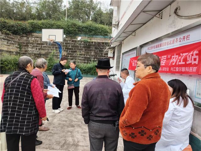 为了普及辖区居民眼科健康知识,提高眼睛保健意识,10月30日,内江残疾人联合会、内江爱尔眼科等,在内江经开区园田社区开展“视觉无障碍·爱眼工程”眼科义诊活动,为居民群众进行免费眼部基础项目的检查。