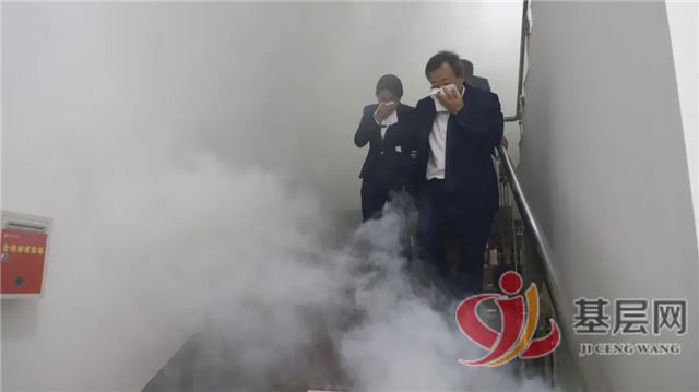 活动邀请了西安国安消防知识科教站教官授课,就消防安全知识、火灾的日常防范注意事项、逃生自救知识及技能等内容进行了详细讲解。培训结束后,全体参训人员开展机关大楼火灾紧急逃生演练,随着大楼发出警报,烟雾弹的滚滚浓烟瞬间在楼道漫延,呼吸困难,看不清步梯,手脚摸索着栏杆和台阶逃生,尽量真实的呈现了火灾时的场景,给演练人员从心理上再次敲响了防火警钟。参训人员按照培训要求用湿毛巾捂住口鼻,有序疏散,避免因混乱造成人员拥挤踩踏伤害。全体人员疏散出去后,统一在办公大楼外安全地带集合。
