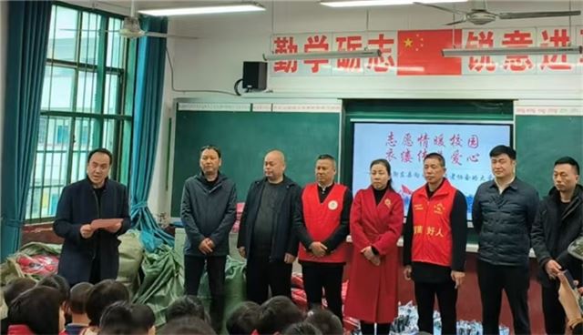 尹路镇长随后讲话,他高度赞扬了此次捐赠活动对地方教育事业的积极推动作用,肯定了向日葵志愿者协会的爱心善举,并鼓励同学们心怀感恩,努力学习,将来以优异的成绩回报社会各界的关爱。