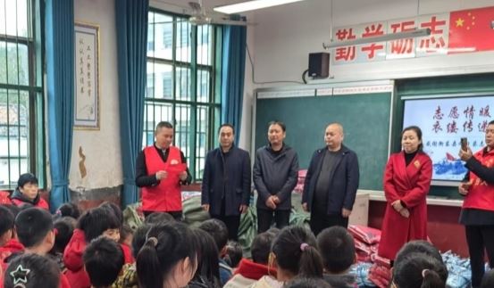 2024 年 11 月 25 日,衡东县草市镇焕塘完小迎来了一场意义非凡的爱心活动——向日葵志愿者协会校服捐赠仪式。当日,校园内洋溢着温暖与感动,草市镇镇长尹路、向日葵志愿者协会会长吴满元、校长陈志雄等领导与嘉宾出席了此次活动。