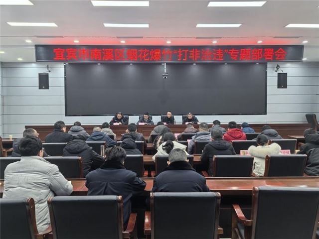 1月8日,宜宾市南溪区召开烟花爆竹“打非治违”专项工作部署会,全面统筹推进烟花爆竹全链条安全监管工作,切实保障人民群众生命财产安全与社会大局稳定。各镇(街道)、相关区级部门分管负责人及辖区内烟花爆竹生产批发企业主要负责人等20余人参会。
