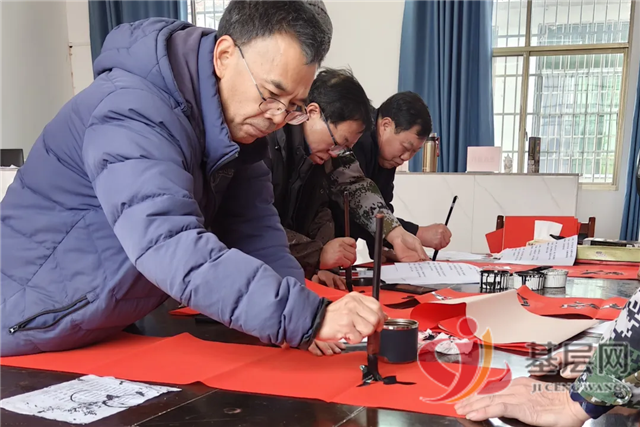 翰墨飘香添年味,红联送福暖民心。写春联是红星村常态化文化活动,早已成为村民迎春“标配”。“红星村一直重视以文化促发展,不光办了五届国庆文艺晚会,还常态化开展送春联、村武这些活动。”村支书介绍道。当天上午,村委会广场人头攒动,书法爱好者挥毫泼墨,一副副春联跃然纸上。联语间既有新春祝福,更饱含对乡村振兴的期许。村民们手捧红联喜笑颜开,红彤彤的春联不仅增添了喜庆氛围,更让传统文化浸润乡村的每个角落。